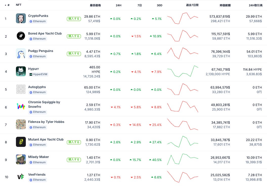CryptoPunksのフロア価格は約5.7万ドル(約900万円)。