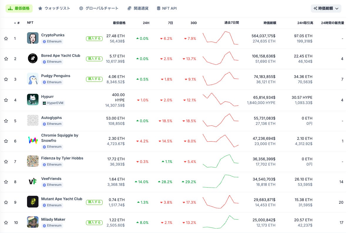 CryptoPunksのフロア価格は約5.6万ドル(約900万円)。